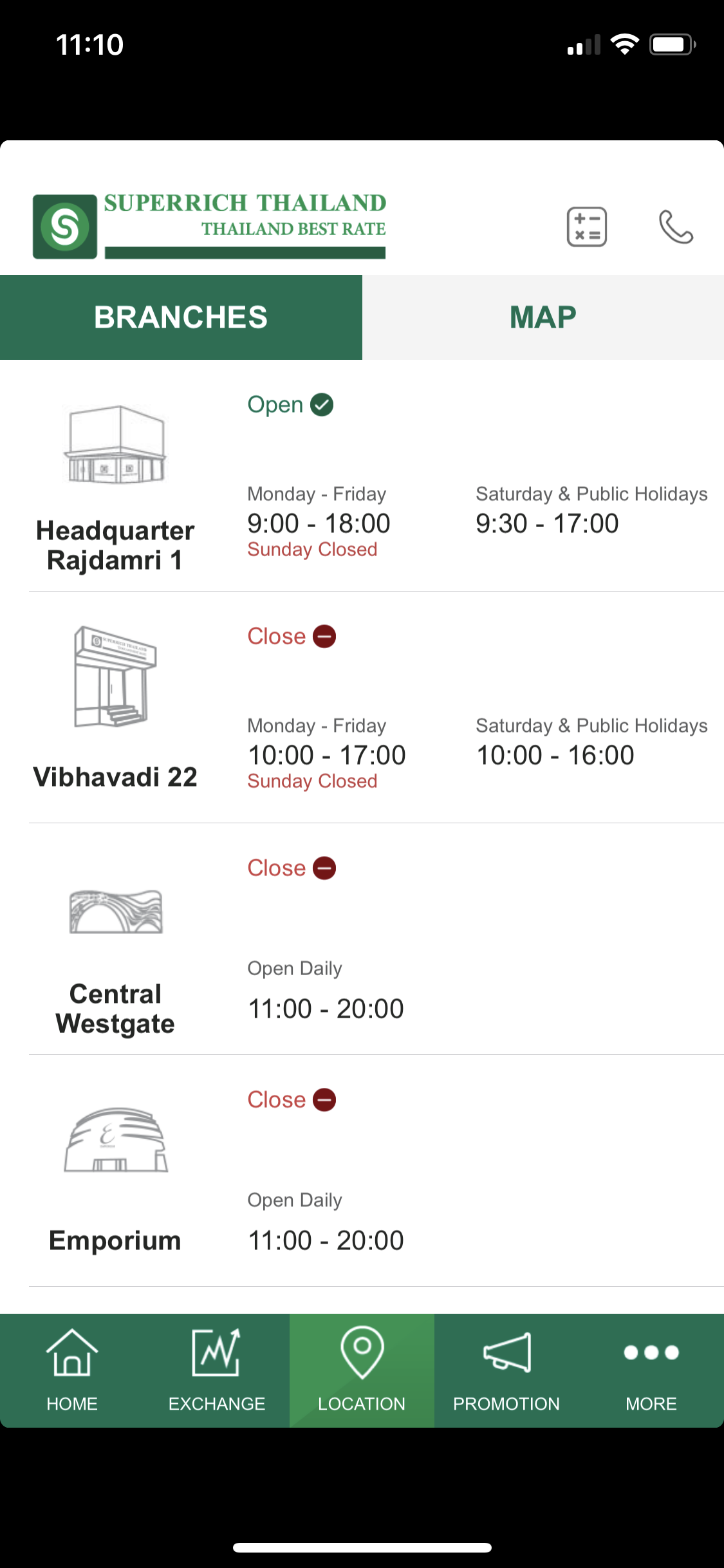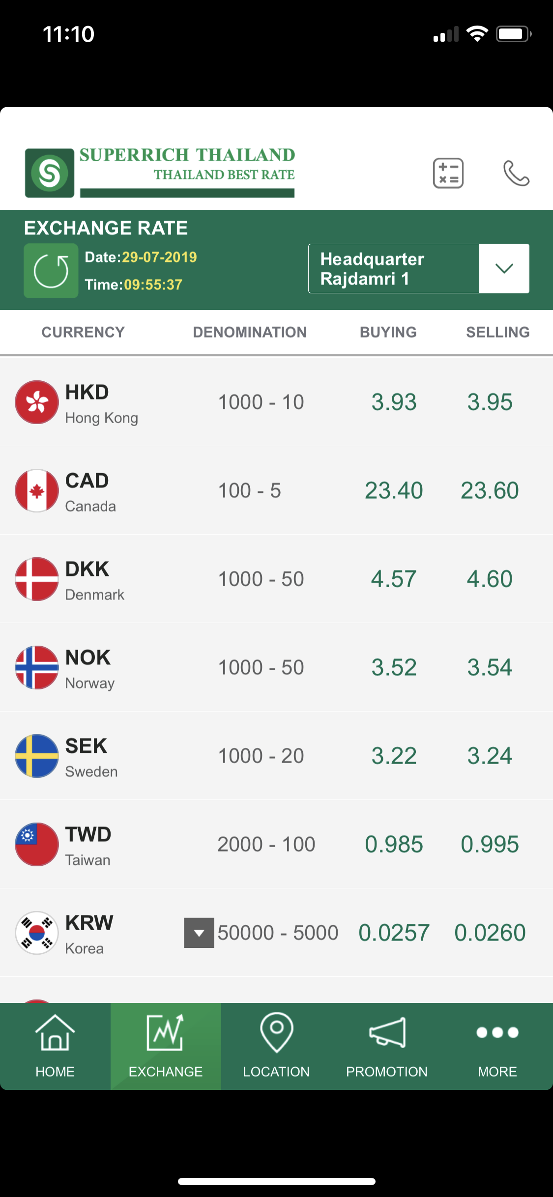 SuperRich是泰國當地匯率比較好,而且分店比較多的一間找換店,下載了「SuperRichTH」應用程式的話,就可以在手機即時查閱34國貨幣兌換泰銖匯率,當中包括港幣、台幣及人民幣等,另外亦可查詢最近的分店位置,在血拼的時候又可以拿來當作換算器使用,非常方便!